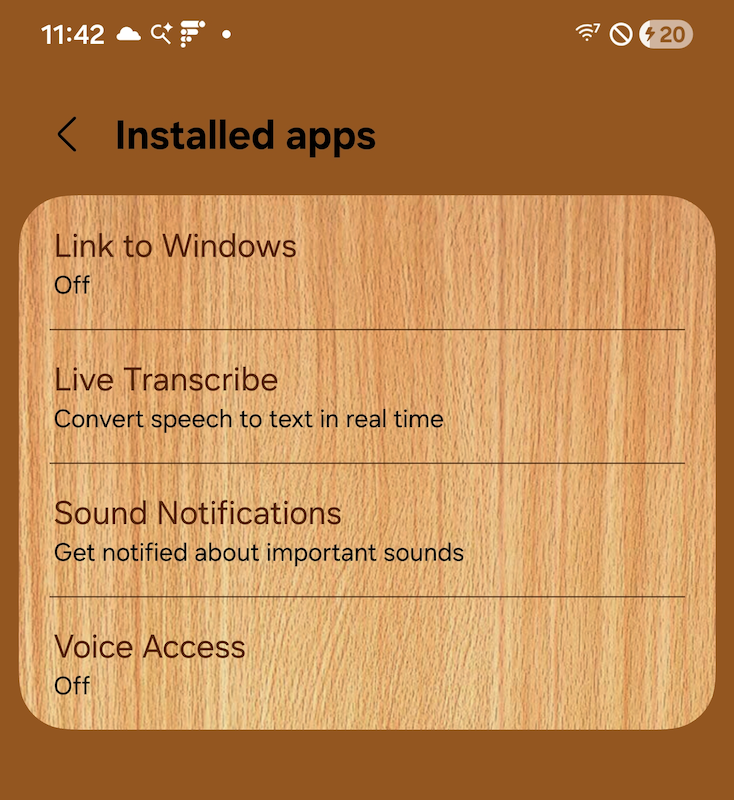 This retrieves the list of "Accessibility Services," which are apps that enhance or integrate with Android devices' Accessibility features. The pre-installed services on my Samsung Galaxy S24 are displayed here. These services are particularly useful for fingerprinting, especially when the user has enabled any of them.